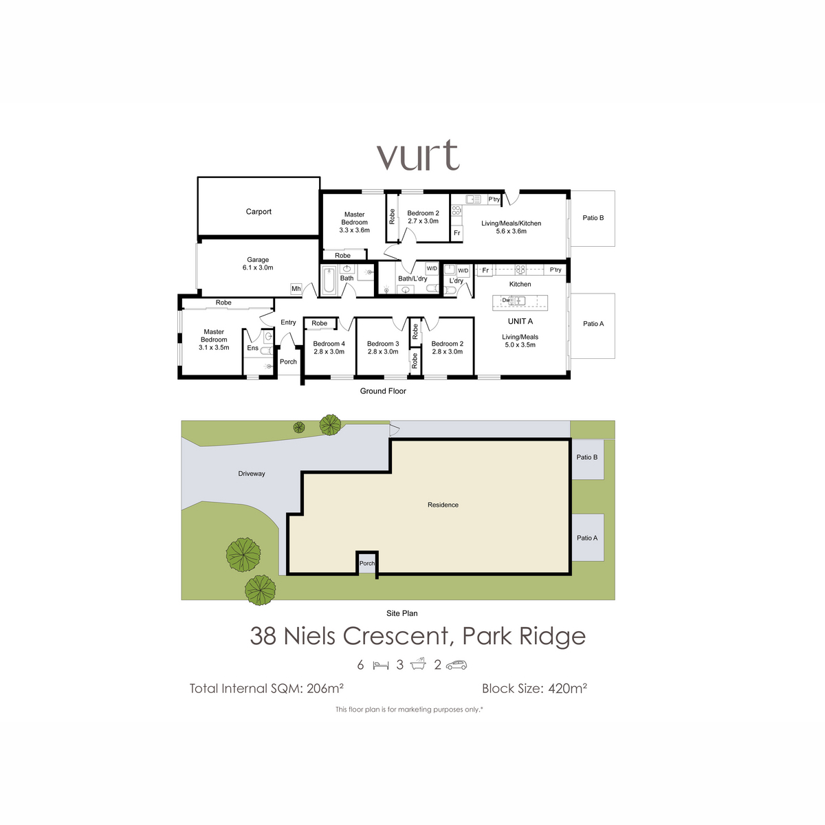 6 Beds 3 Baths 2 Cars 420 m2