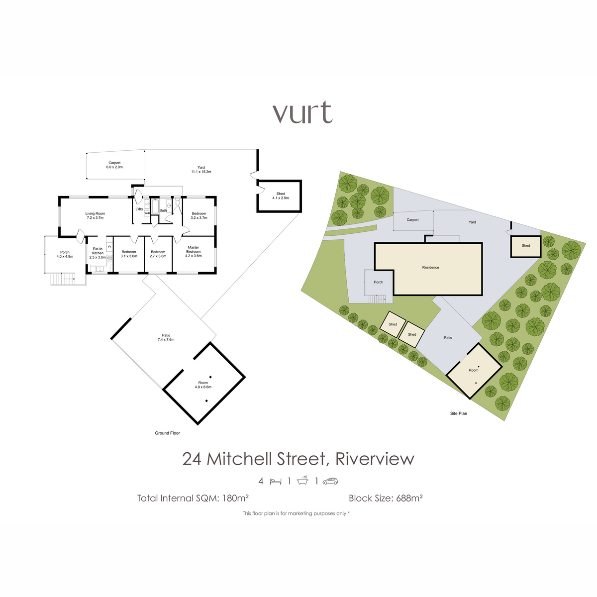 4 Beds 1 Baths 1 Cars 688 m2