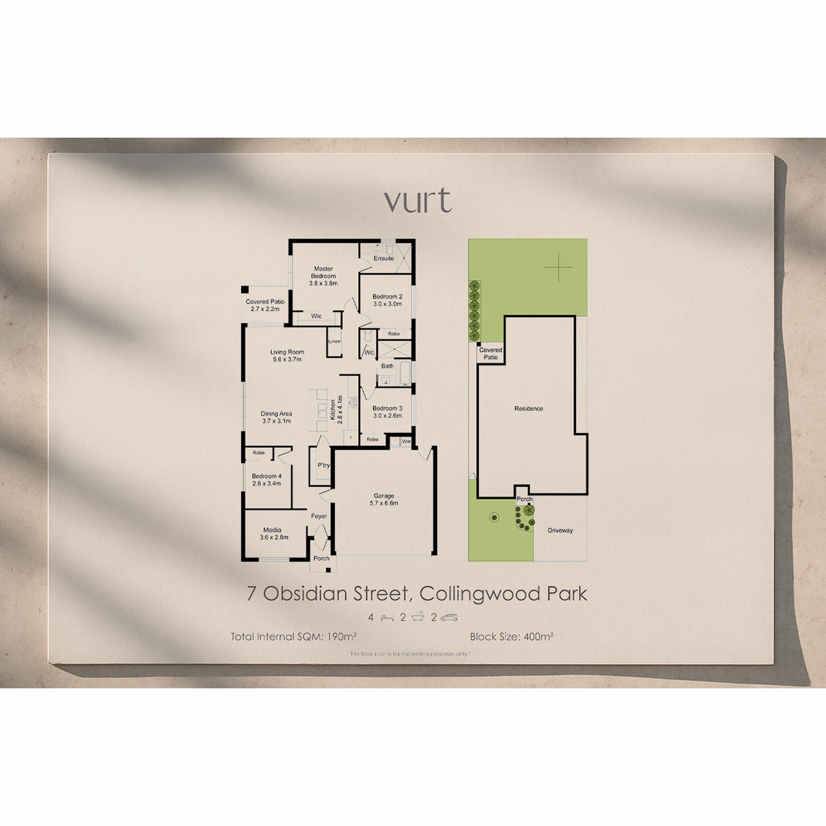 4 Beds 2 Baths 2 Cars 400 m2