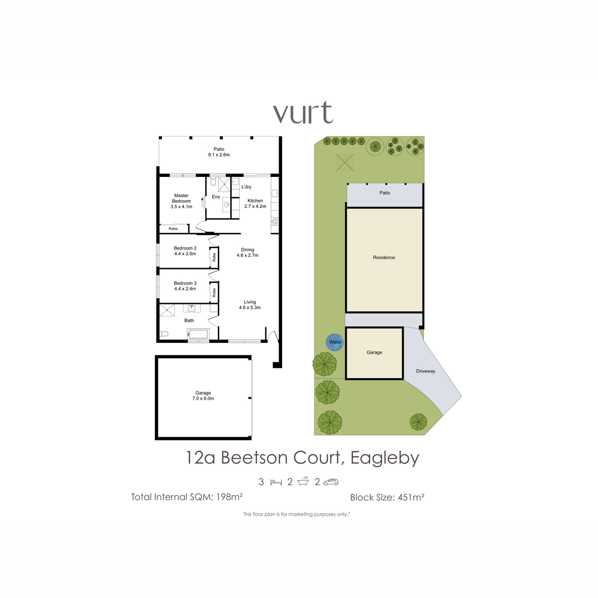 • 3 Bed. 2 Bath. 2 Car. 451m2. 198m2 Under Roof.