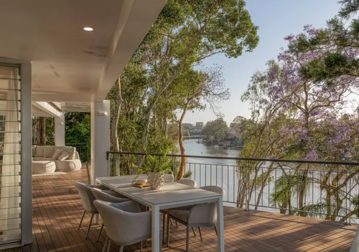 • Absolute privacy, Perfect NE aspect, 180-degree river views, Jacaranda framed breezy river vista.