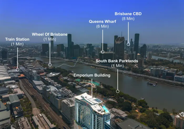 • South Bank Parklands • South Bank Railway Station • Griffith University • Brisbane State High School • Abundance of Local Cafes and Restaurants.
