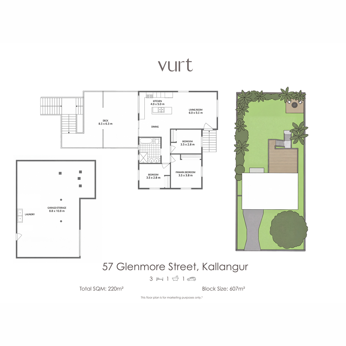 3 Beds 1 Baths 1 Cars 607 m2