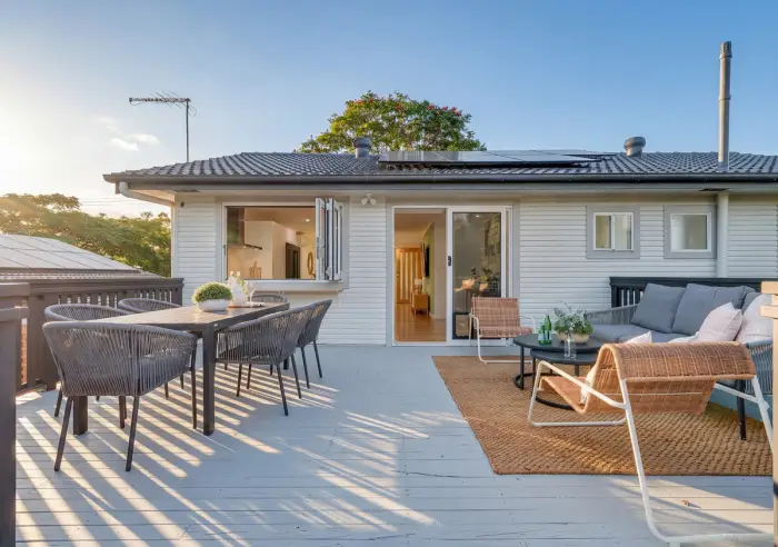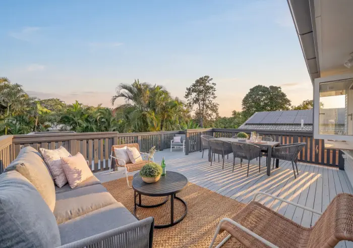 • The open-plan kitchen and dining area allows for a seamless flow through to the outdoor entertaining deck, with a servery window that makes hosting friends and family all year round a pleasure.