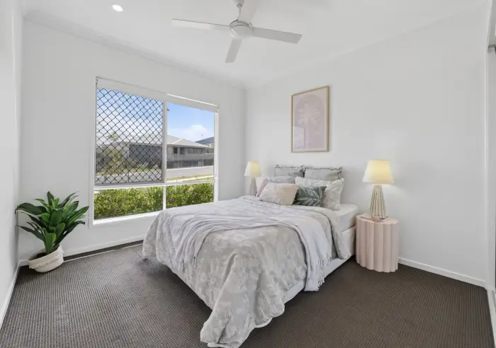 • Four well-sized bedrooms, including a spacious master suite with WIR, ensuite with freestanding shower, stone vanity, and Ducted A/C. All remaining bedrooms feature built-in robes, fans, carpet and Ducted A/C, serviced by a second bathroom with bathtub, shower, vanity, and separate toilet.