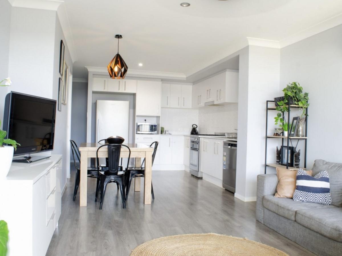 • Light-filled open plan living and dining area positioned on the lower level, enhanced by timber-look vinyl flooring and split system air conditioning for year-round comfort.